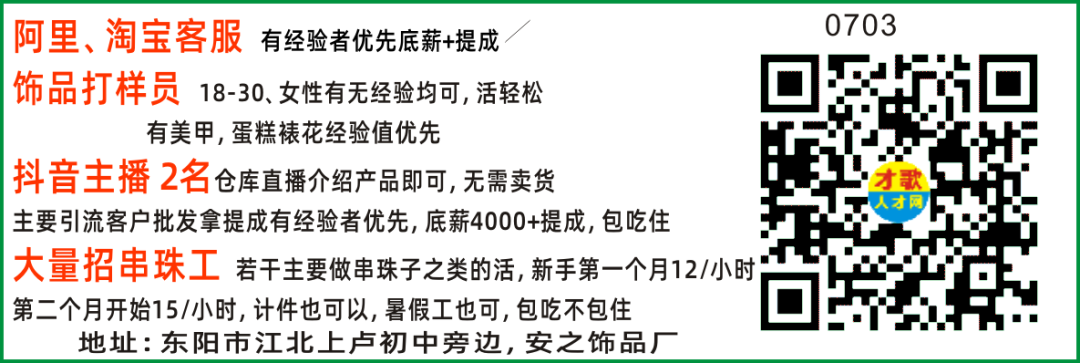 设备滴油工 数名摆货工 数名 工资面议熟手优先,男女不限 .每月有吃住补助tel位置:东阳市五马塘才歌网-按住二维码不放就可查看tel