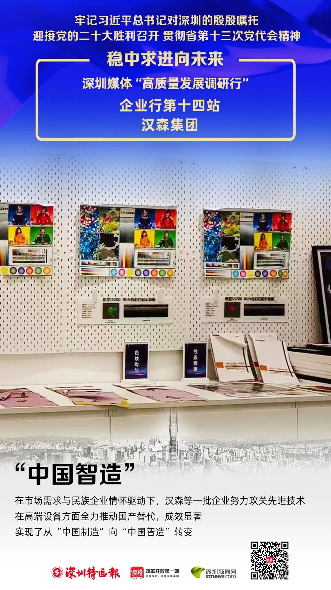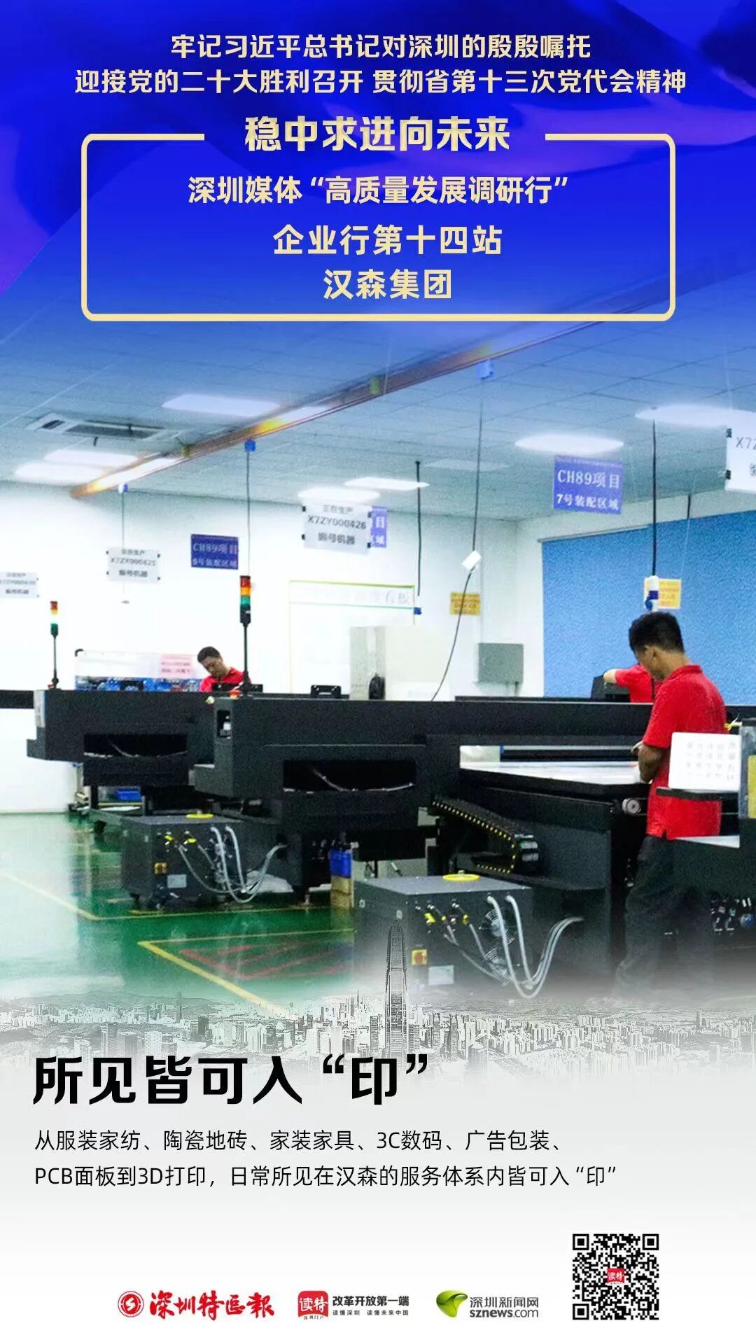 宝安区西乡街道中德(欧)产业示范园内,倘若不是一排排奖状证书,一件件精致的工业打印样品,很难想象,这儿藏龙卧虎。汉森集团,国内工业数码打印行业独一一家全产业链企业,年出货量稳居行业领先的“小巨人”,持有开发中心汉森软件、智造中心图创智能、方法中心森彩数字三大板块,已获授权专利430件,将来两年专利预计突破1500件。展示厅里,一起块色彩绚丽的纺织品吸引了众人的目光。汉森工程师介绍,“与传统丝印技术相比,数码喷墨打印技术应用于纺织印花行业,可节约油墨运用量20%~40%、用电量50%、减少环境污染96%,有力推动了纺织印染行业绿色低碳。尤其是数码喷墨打印技术相较传统,可实现小批量精细打印,自动化程度高、全过程监管,很好地契合了市场需要,数码喷墨打印比例逐年大幅提升。”技术人员对多功能工业平台打印机设备进行检测调试。
