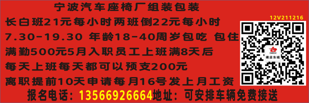 以上岗位薪水面议 厂里供给住宿位置:东阳江北湖田路8号137-0679-6216158-5796-2930
