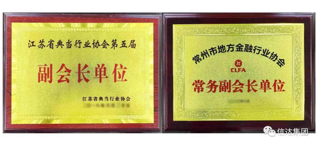 地区金融行业协会常务副会长单位、江苏省典当行业协会副会长单位、江苏省小贷行业协会理事单位。在