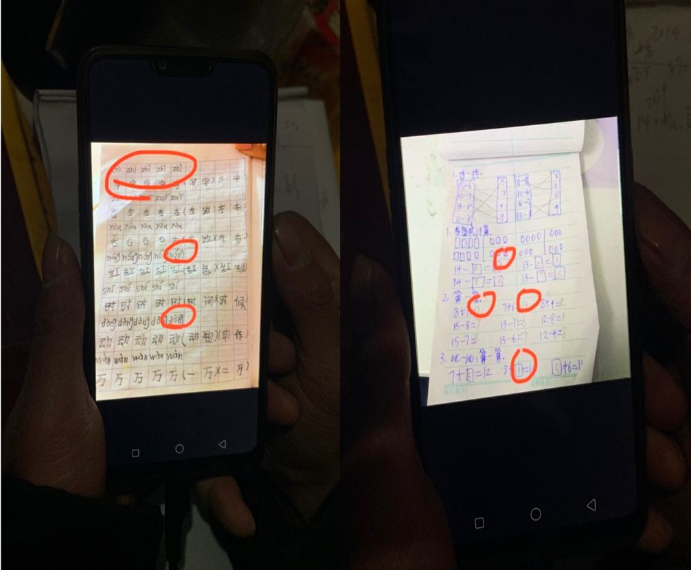 但临上课前的5分钟,高鹏担心的状况还是出现了,手机网络不稳定,画面始终卡顿中,东西南北各换了个方向,网速还是不行。为了不耽误儿子上课,高鹏快速给自己和儿子戴上口罩,跑去同村的亲戚家蹭网。