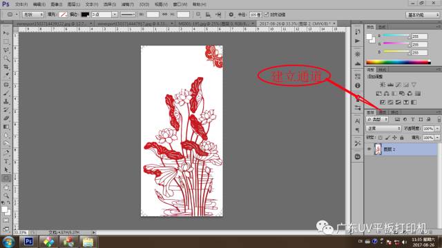 选取这个专色通道;点击图层,选中图层2,再点击通道,新建专色通道;
