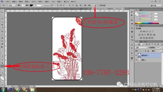 5运用圆角矩形工具,半径改为105像素(