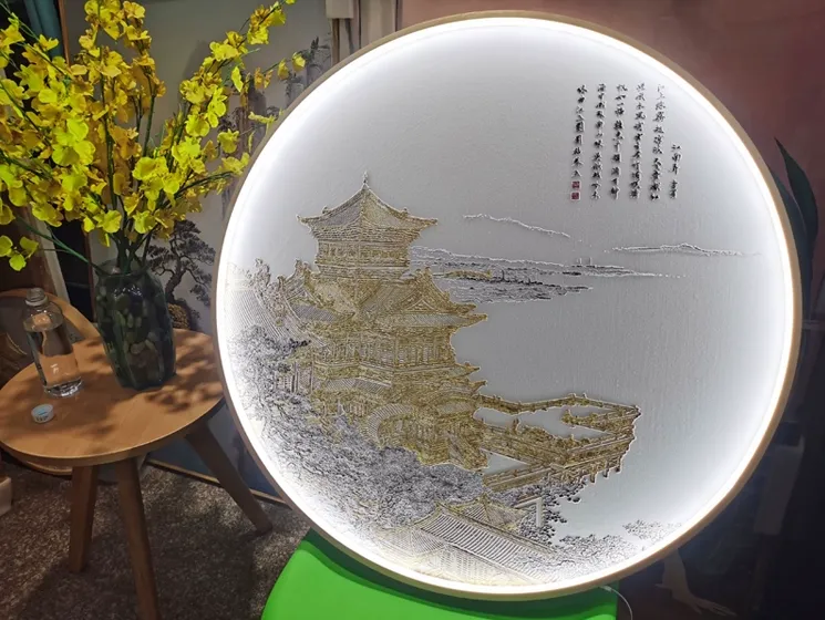 倘若想要烫金效果,能够敷烫金膜处理,制作出的肌理画,色彩鲜艳,肌理线条清晰,金光闪闪,提高家居装饰画新高度。灯光画近期抖音、淘宝、小红书各大平台上很火的灯光画,光抖音平台上,59.9元起的灯光画,某个店铺就已售3.9万笔。淘宝上,按照画框材质的区别,从50到200多价格不等,非常多店铺月销量都还不错。网友评论说,第1眼看平平无奇,但开灯以后,真的美爆了,很治愈。